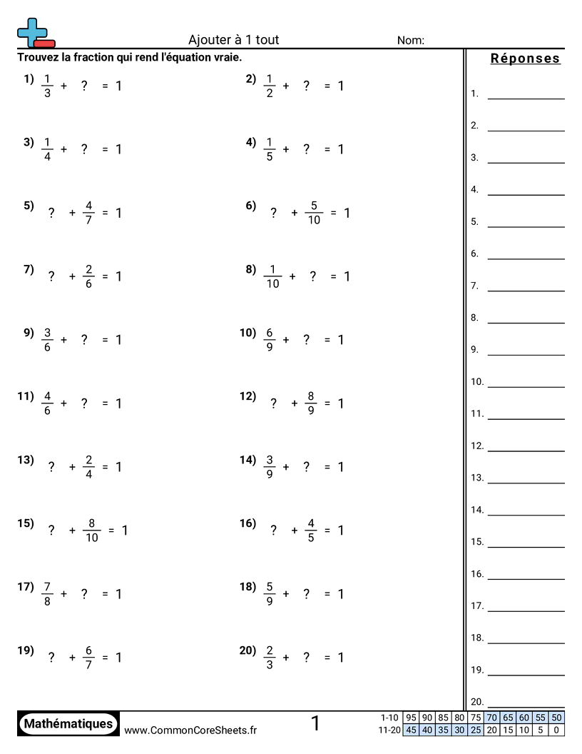 Additionner jusqu’à 1 entier