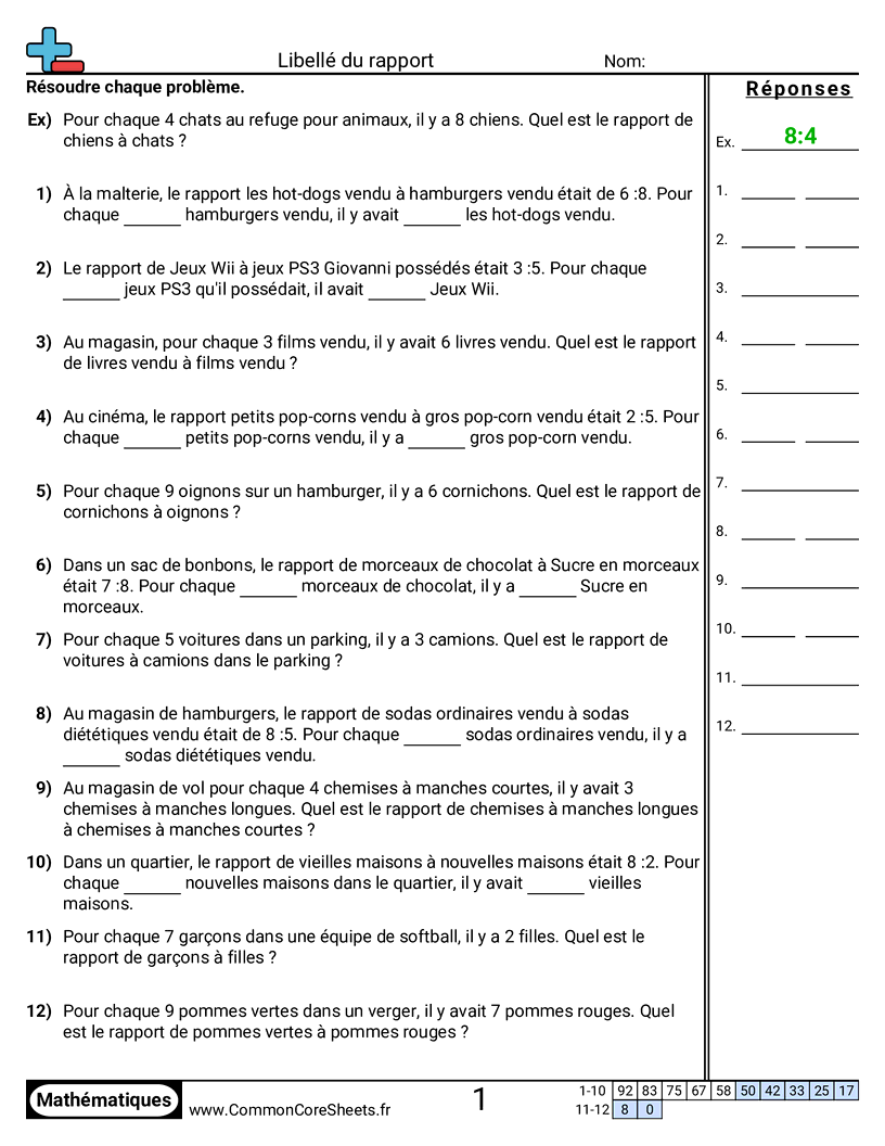 Fiches gratuites de math pour 6ème (6rp1) sur Libellé du rapport . Chaque fiche contient 12 exercices avec corrigé et convient aux enseignants et à l'enseignement à domicile. Vous pouvez télécharger le PDF, créer des cartes mémoire ou l'utiliser pour l'apprentissage en ligne.