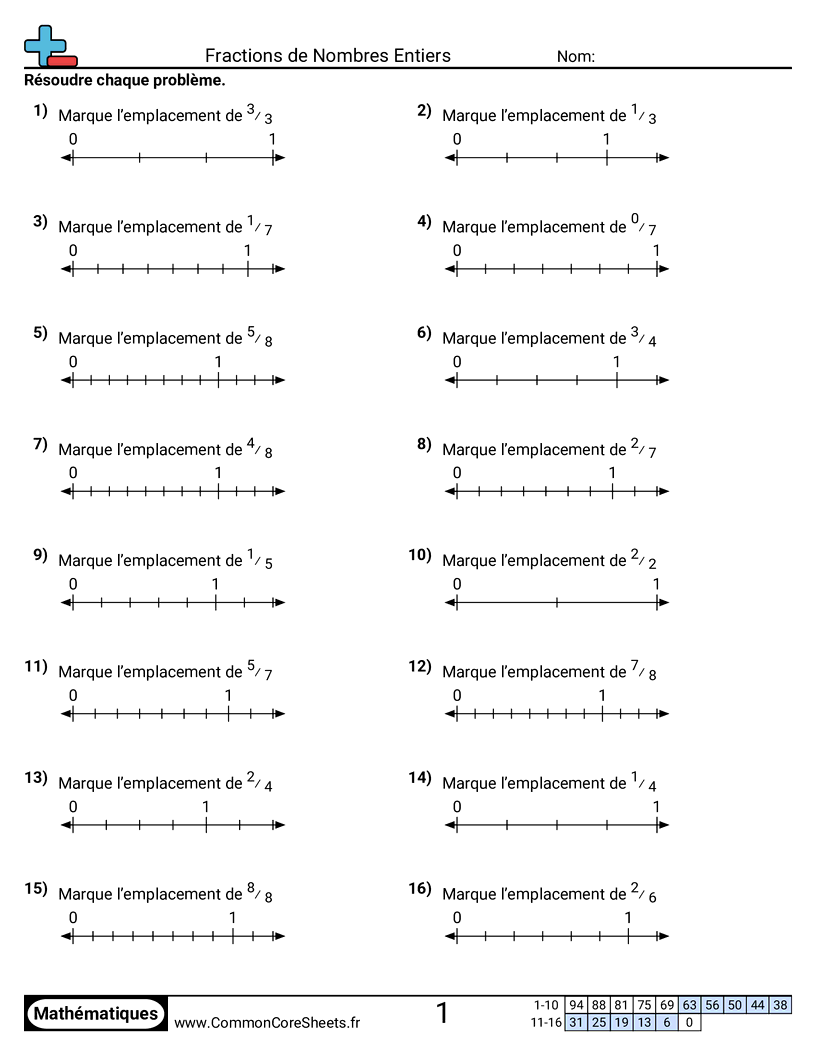 Identifier l’emplacement d’une fraction sur une droite numérique